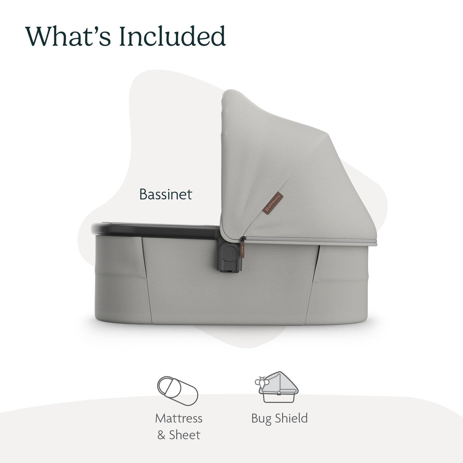 Transform your Vista, Cruz, or Ridge into a safe and stylish pram ideal for your newborn. Whether for naps on the go or overnight sleeping, our Bassinet allows your baby to lie completely flat. The Bassinet V3 has enhanced features including greater ventilation, easy access to baby, and a breathable mattress for safe sleep. – Extendable, UPF 50+ sunshade and mesh panels for air flow – Carry handle with an effortless one-hand stroller release for easy on-and-off attachment – Zip-out, water-repellent inner liner and boot cover are easy to remove and clean – Direct attachment to stroller with indicators for extra security – Included Bug Shield to protect from outdoor elements – Fits directly onto Bassinet Stand Accessory – GREENGUARD Gold certified to support healthier air quality & low chemical emissions + What is Included – Bassinet – Bassinet Bug Shield – Mattress – Mattress Cover.