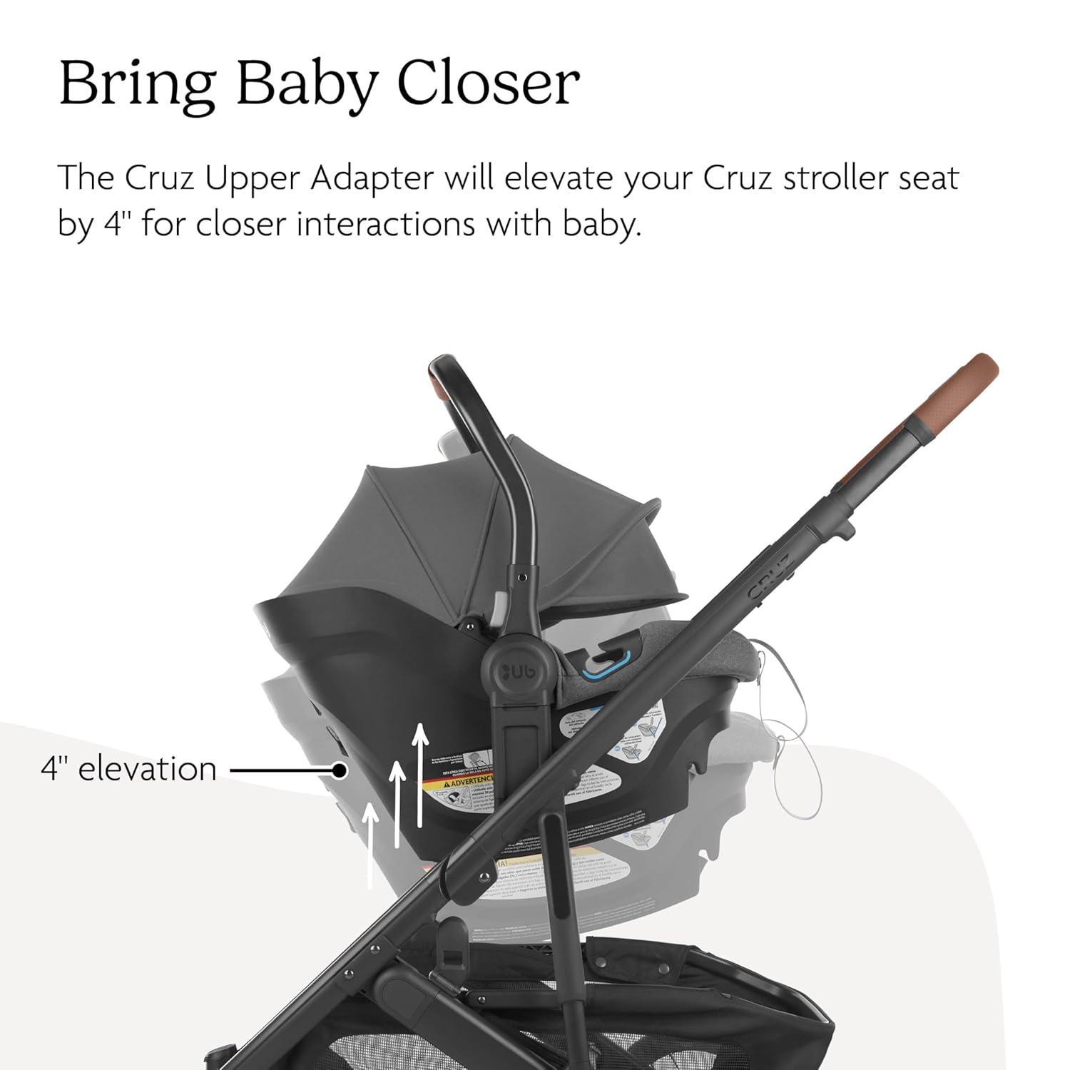 BRING BABY CLOSER: The Cruz Upper Adapter will elevate the Cruz V2 or Cruz V3 seat by 4”, conveniently bringing baby even closer to parent.