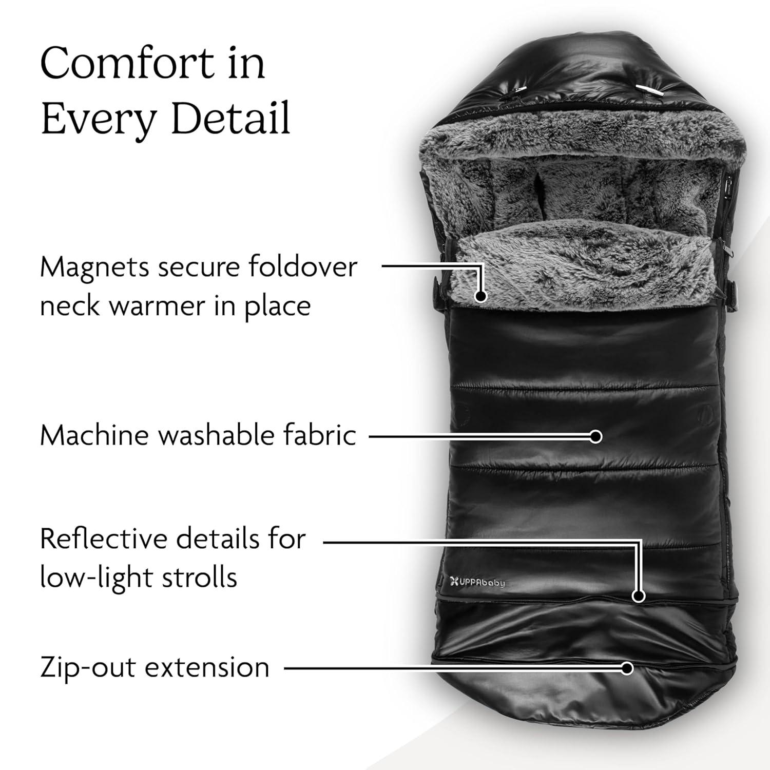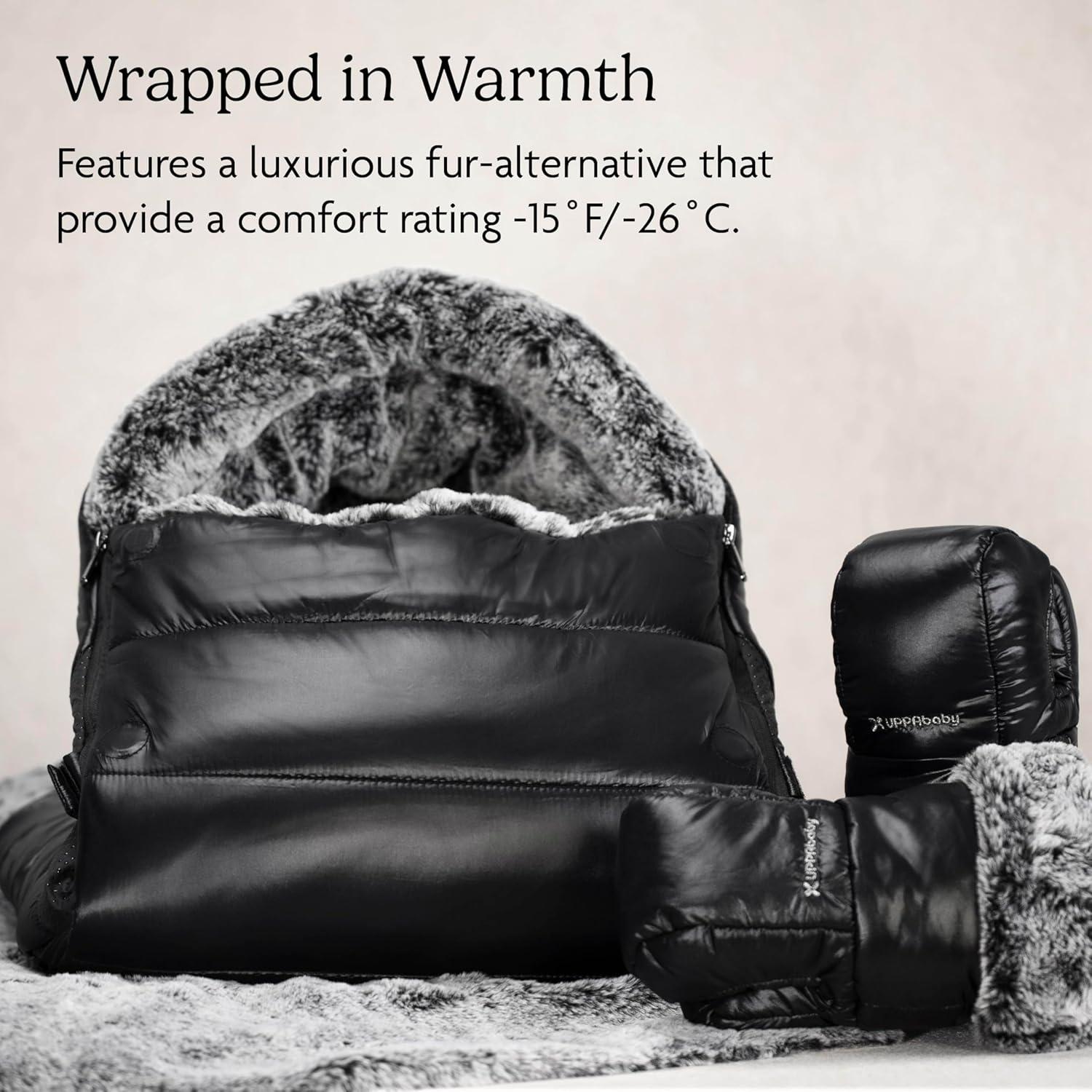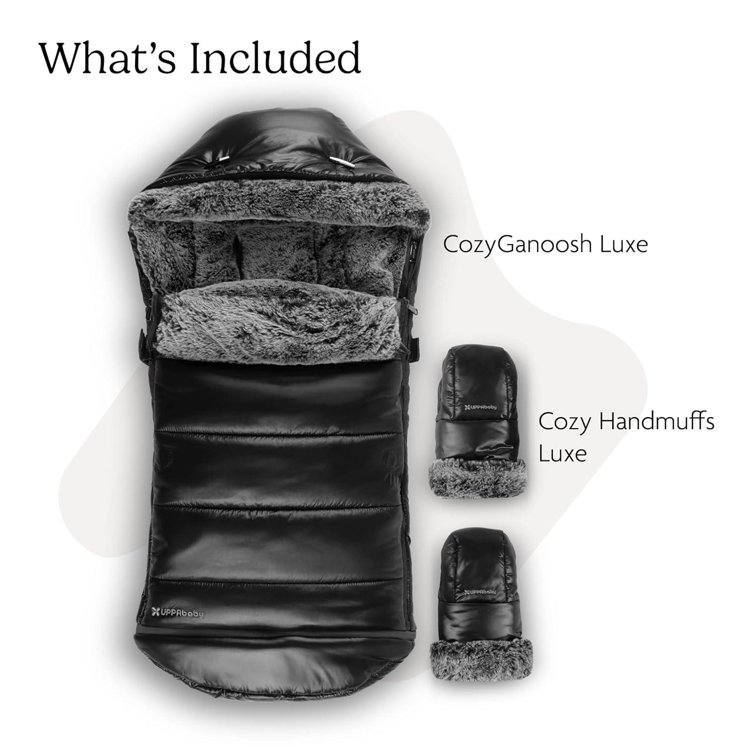 imageUPPAbaby Luxe Cozy Bundle Includes CozyGanoosh Luxe 2in1 AllSeason Footmuff and Luxe CozyHandmuff Easily Attaches to Stroller UltraPlush ZipOut Liner Weatherproof  Lyla Onyx Nylon