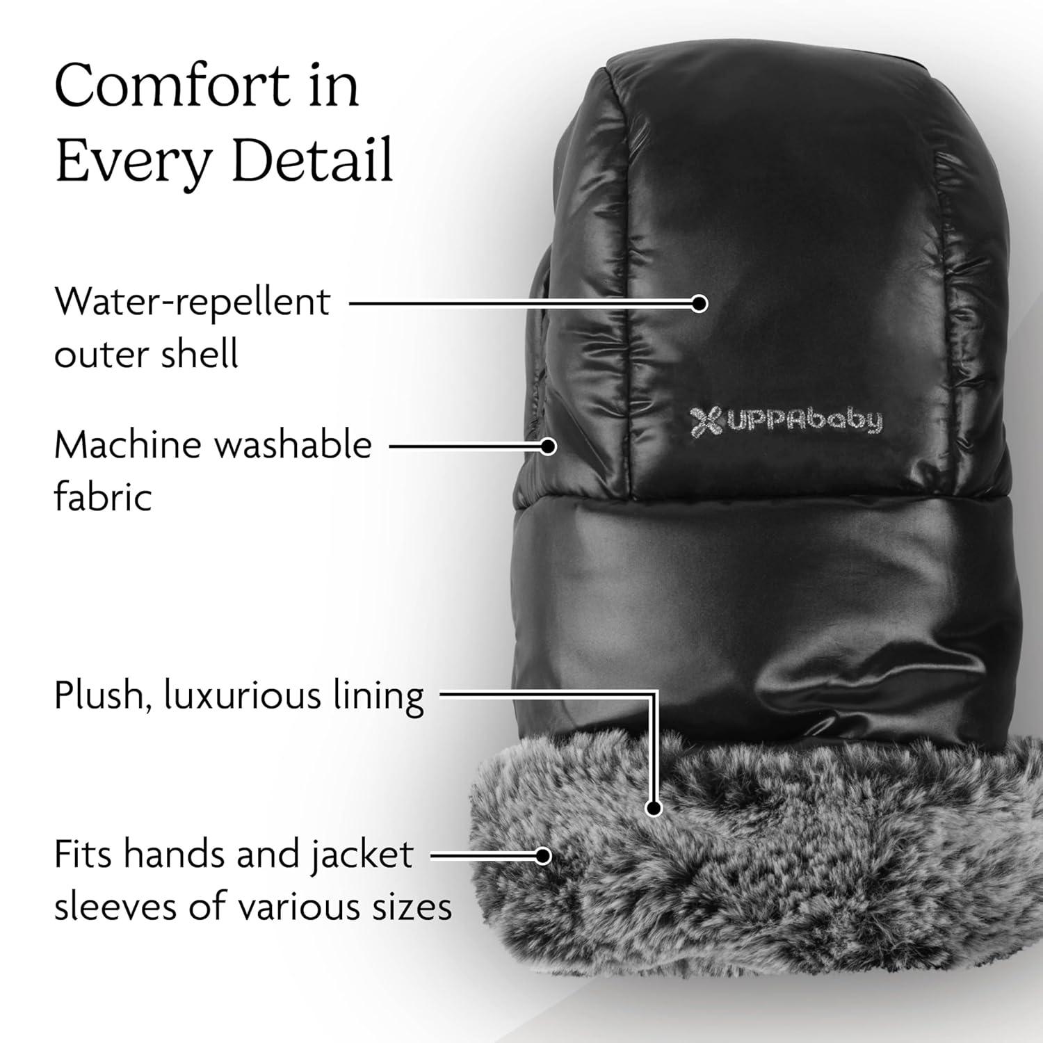 UPPAbaby Luxe Cozy Bundle, Includes CozyGanoosh Luxe 2-in-1 All-Season Footmuff and Luxe CozyHandmuff, Easily Attaches to Stroller, Ultra-Plush Zip-Out Liner, Weatherproof – Lyla (Onyx Nylon)