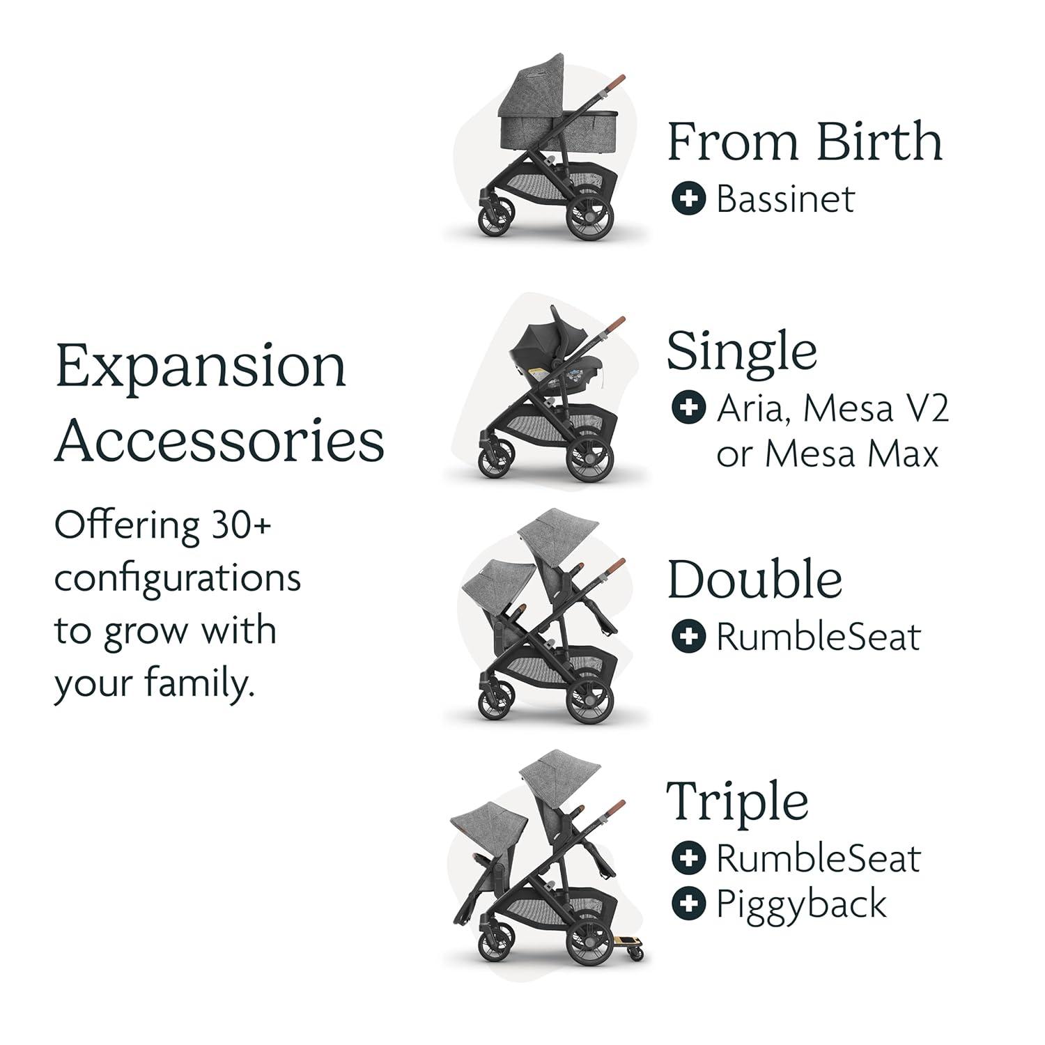 DESIGNED TO FIT EVERY FAMILY: The reimagined Vista V3 Stroller offers 30 plus configurations to grow with your family starting from birth up to 3 children in tow